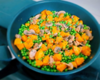 4. En même temps, poêlez l'espadon coupé en dés dans une poêle anti adhésive, 1 mn de chaque coté.